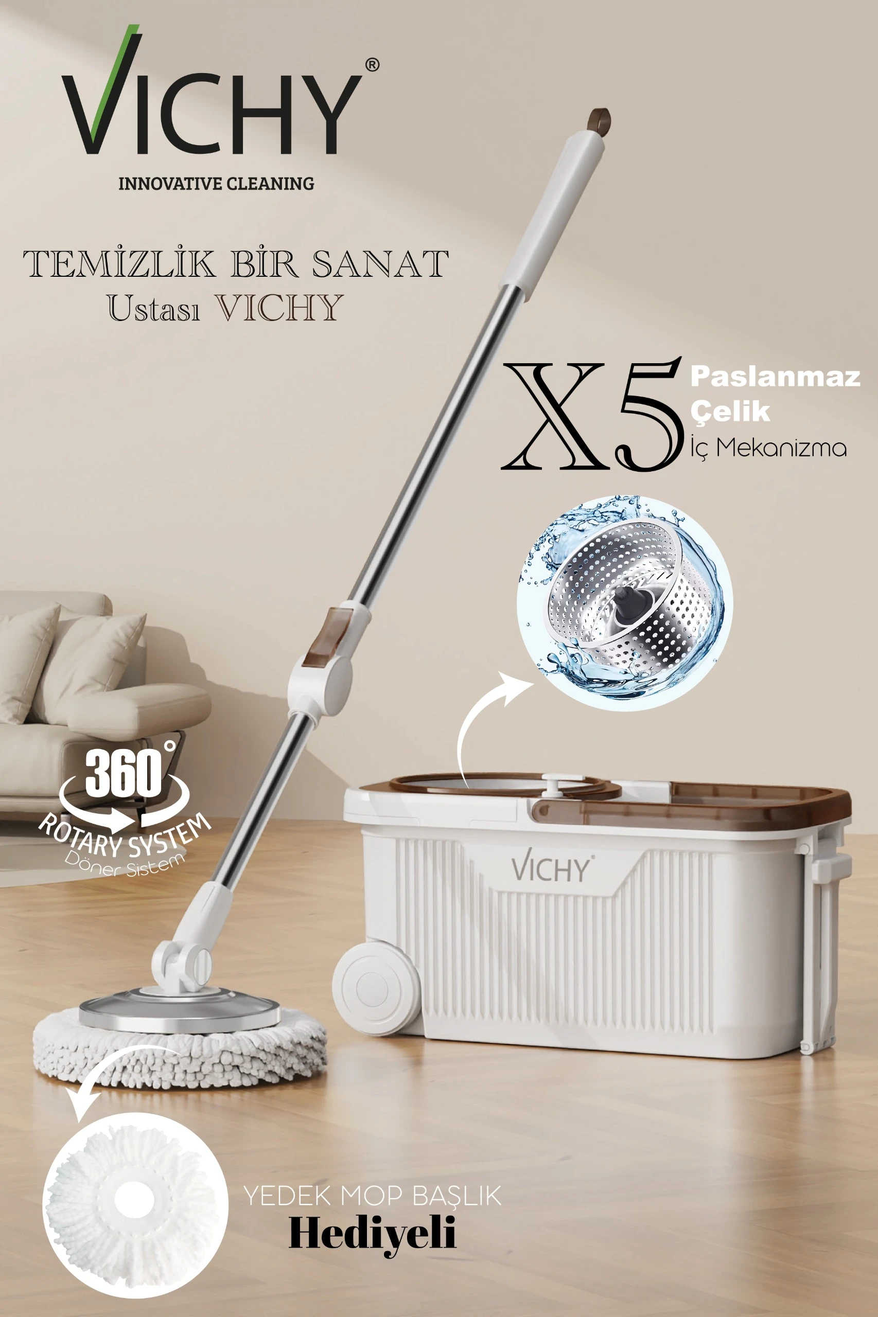 Orta seviye fiyatlandırması sayesinde bütçe dostu olmasının yanında, performansıyla da yüksek memnuniyet sunar. Minimal, modern ve kullanışlı çizgisiyle Vichy, hem ev hanımlarının hem öğrencilerin hem de yeni ev kuranların ihtiyaçlarına hitap eden çok yönlü bir markadır. Temizliği daha kolay, daha verimli ve daha hijyenik hale getirmeyi amaçlayan Vichy, günlük yaşamda pratik çözümler arayan herkes için güvenilir bir tercih olmaya devam ediyor. Evinizin her köşesinde daha sağlıklı ve düzenli bir ortam oluşturmak için Vichy’nin profesyonel ve kullanımı rahat ürünleriyle tanışın.